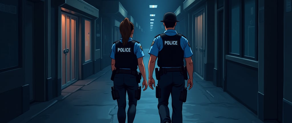 Lulu and I had ordered a pizza last night and were sitting outside the pizza place in our car, waiting for our order to be cooked. A couple of young police officers, a nice looking male and a neat little female, walked past, both wearing bullet-proof vests. They walked down the dark corridor between the shops... to the toilets. The not-very-nice-and-clean toilets.